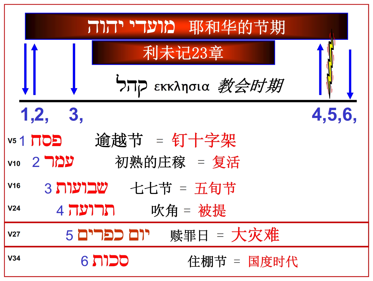 利 未 記 23 耶 和 華 對 摩 西 說 :2 你 曉 諭 以 色 列 人 說 : 耶 和 華 的 節 期 , 你 們 要 宣 告 為 聖 會 的 節 期 。