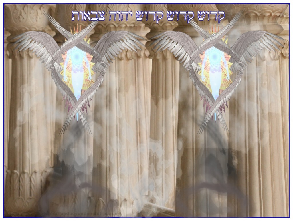 Isaiah 6: 1 In the year that king Uzziah died I saw also the Lord sitting upon a throne, high and lifted up, and his train filled the temple. 2 Above it stood the seraphims: each one had six wings; with twain he covered his face, and with twain he covered his feet, and with twain he did fly. 3 And one cried unto another, and said, Holy, holy, holy, is the LORD of hosts: the whole earth is full of his glory. 4 And the posts of the door moved at the voice of him that cried, and the house was filled with smoke.