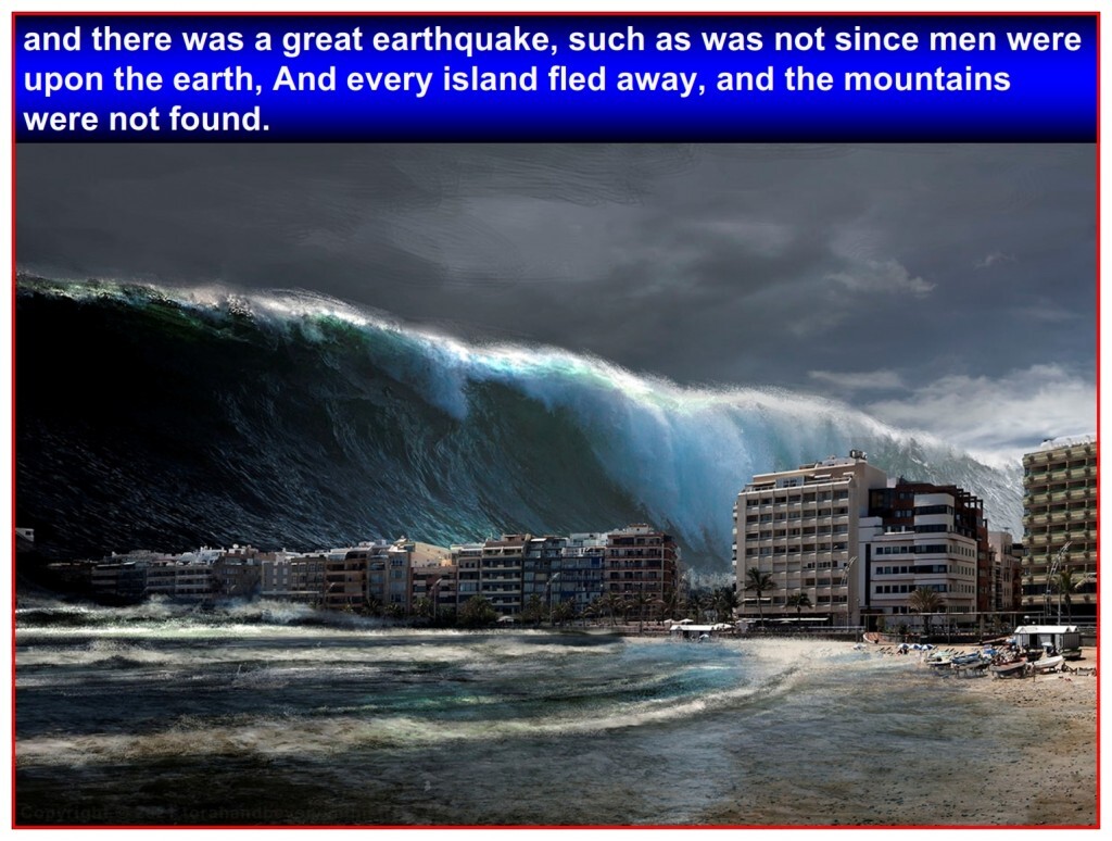 Last judgment of the seven Golden Vials: oceans will rise to great height and cover ALL the islands