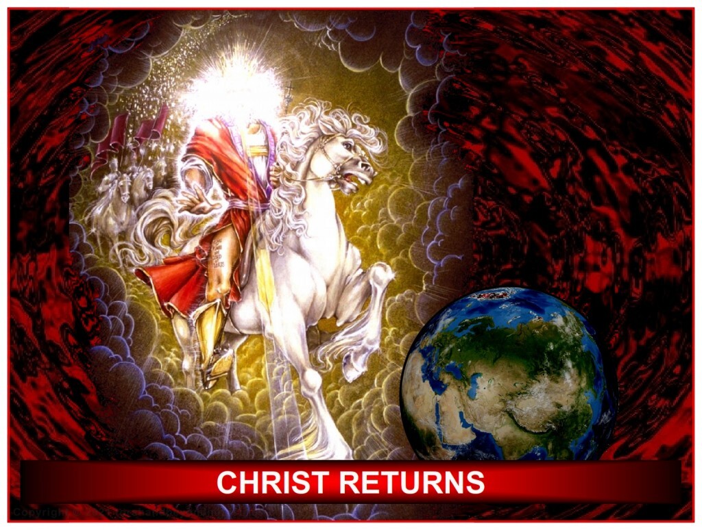 The return of Jesus Christ at the end of the Tribulation – copyright and credit line: Art used from Pat Marvenko Smith, copyright 1992.