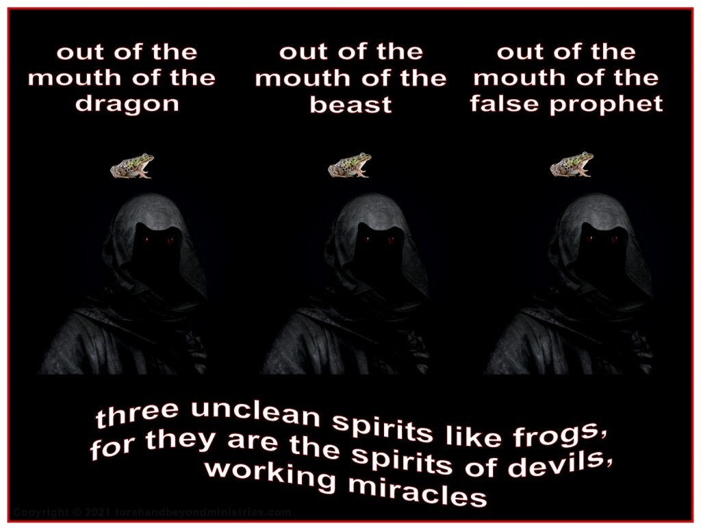 Revelation 16:12 And the sixth angel poured out his vial upon the great river Euphrates; and the water thereof was dried up, that the way of the kings of the east might be prepared. 13 And I saw three unclean spirits like frogs come out of the mouth of the dragon, and out of the mouth of the beast, and out of the mouth of the false prophet. 14 For they are the spirits of devils, working miracles, which go forth unto the kings of the earth and of the whole world, to gather them to the battle of that great day of God Almighty. 15 Behold, I come as a thief. Blessed is he that watcheth, and keepeth his garments, lest he walk naked, and they see his shame. 16 And he gathered them together into a place called in the Hebrew tongue Armageddon.