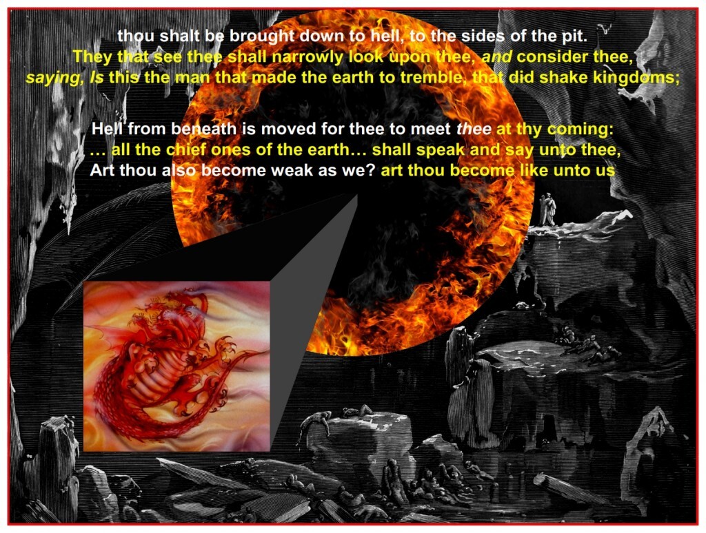 Hell from beneath is moved for thee to meet thee at thy coming: … all the chief ones of the earth… shall speak and say unto thee, Art thou also become weak as we? art thou become like unto us