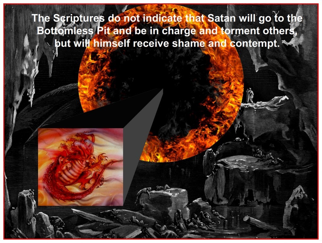 The Scriptures do not indicate that Satan will go to the Bottomless Pit and be in charge and torment others, but will himself receive shame and contempt.