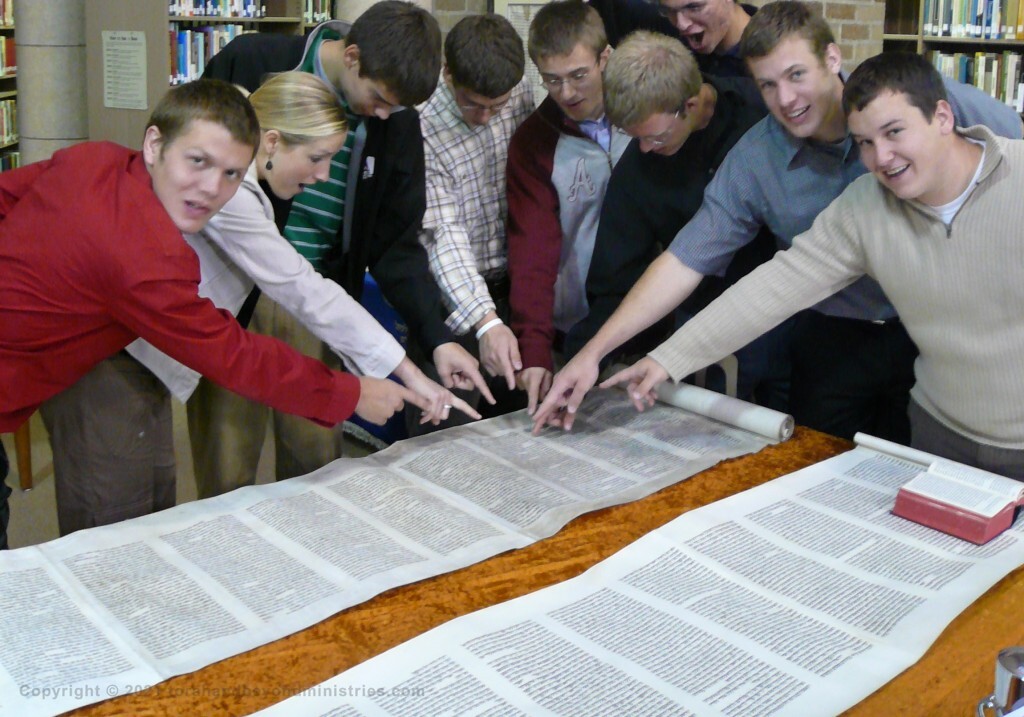 In the photograph below students at Baptist Bible College in Scranton, Pennsylvania were rejoicing to see an authentic Hebrew Scrolls we brought to their Hebrew class. They are pointing to Isaiah chapter 53 in the Scroll of Isaiah.