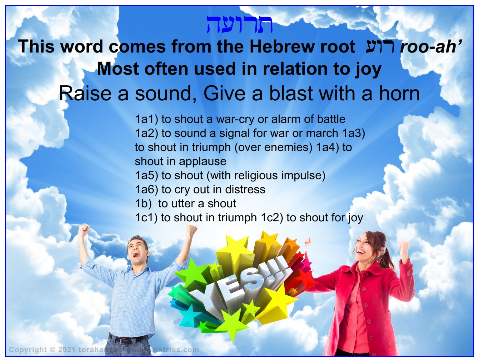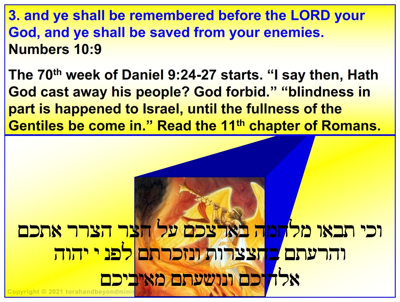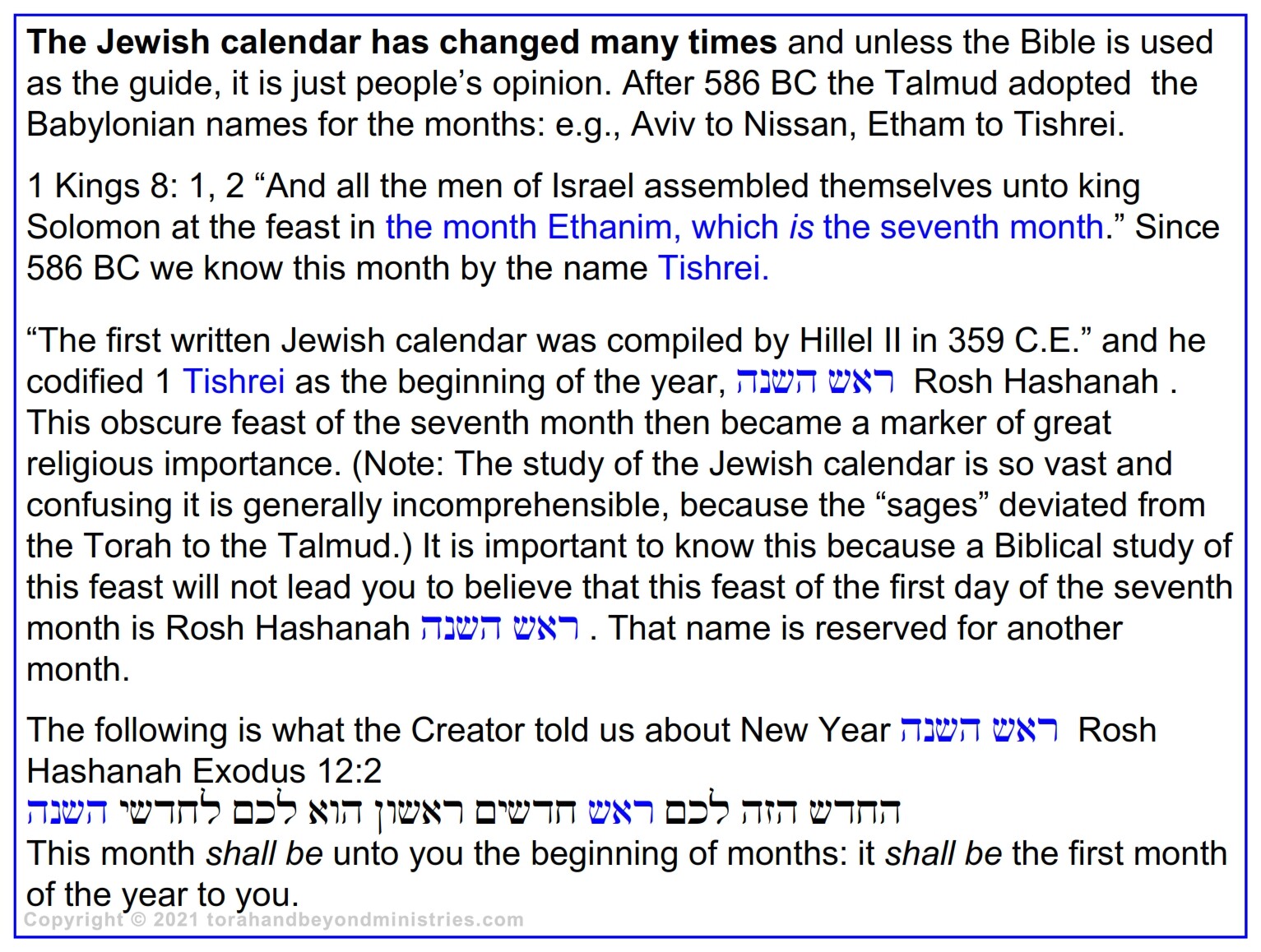 There are many interpretations about the Feast of Trumpets. To some it is a very solemn preparation for the great and dreadful day of Judgment at the Day of Atonement to others it is a long-awaited joyful reunion with the Lord in the air which precedes the “Time of Jacob’s Trouble”. To understand it properly we must understand what this feast is not. According to The Creator, it is not the head of the year, Rosh Hashanah hnsh sar as some believe. Someone has tampered with the Written Word of God in the Jewish calendar.