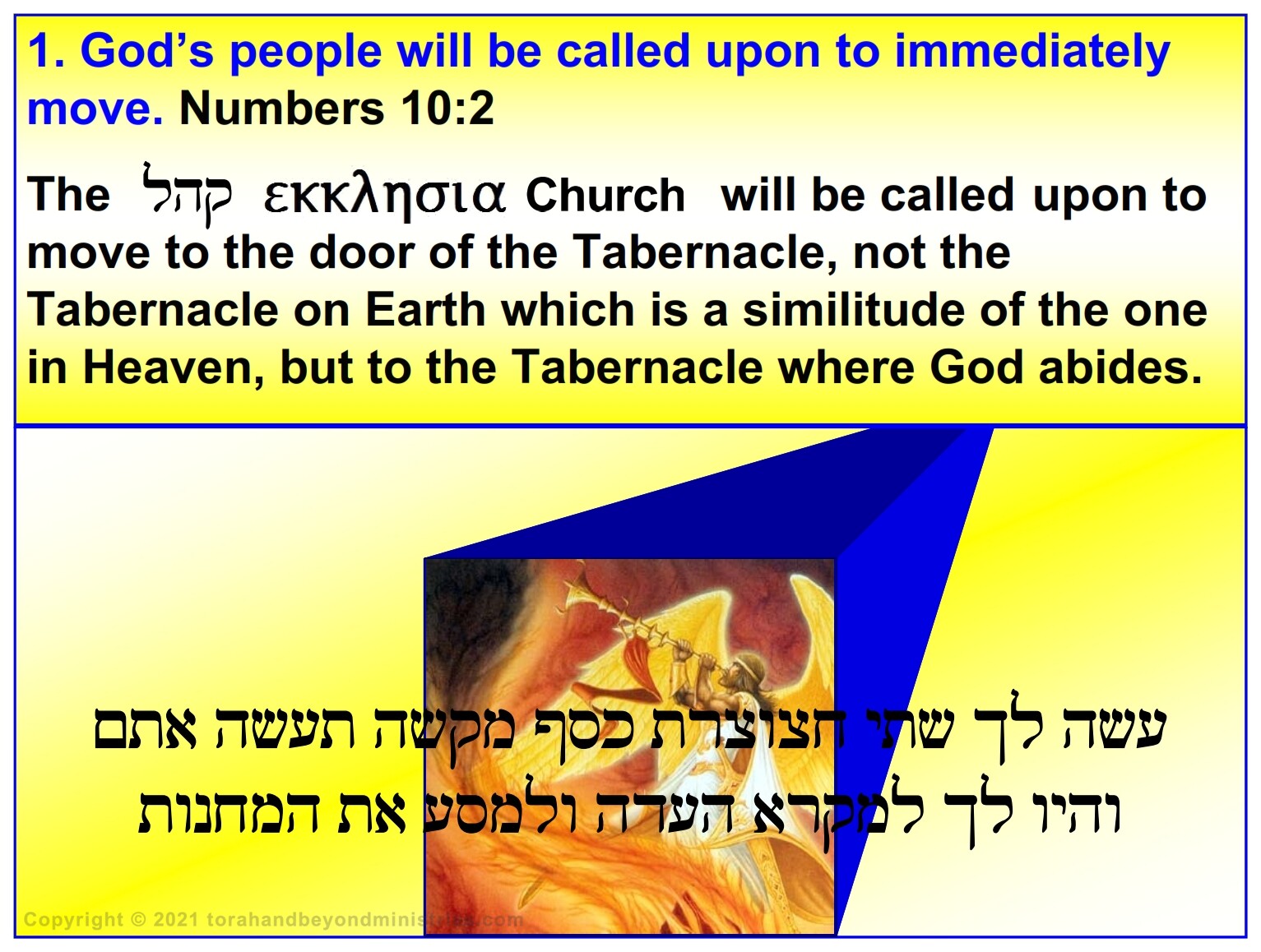 There are many interpretations about the Feast of Trumpets. To some it is a very solemn preparation for the great and dreadful day of Judgment at the Day of Atonement to others it is a long awaited joyful reunion with the Lord in the air which precedes the “Time of Jacob’s Trouble”. To understand it properly we must understand what this feast is not. According to The Creator, it is not the head of the year, Rosh Hashanah hnsh sar as some believe. Someone has tampered with the Jewish calendar.