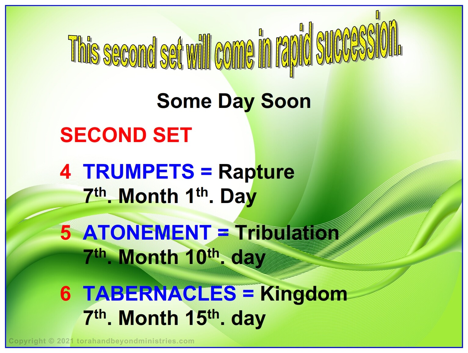 The Feast of Trumpets is feast number four in the chronology chart.