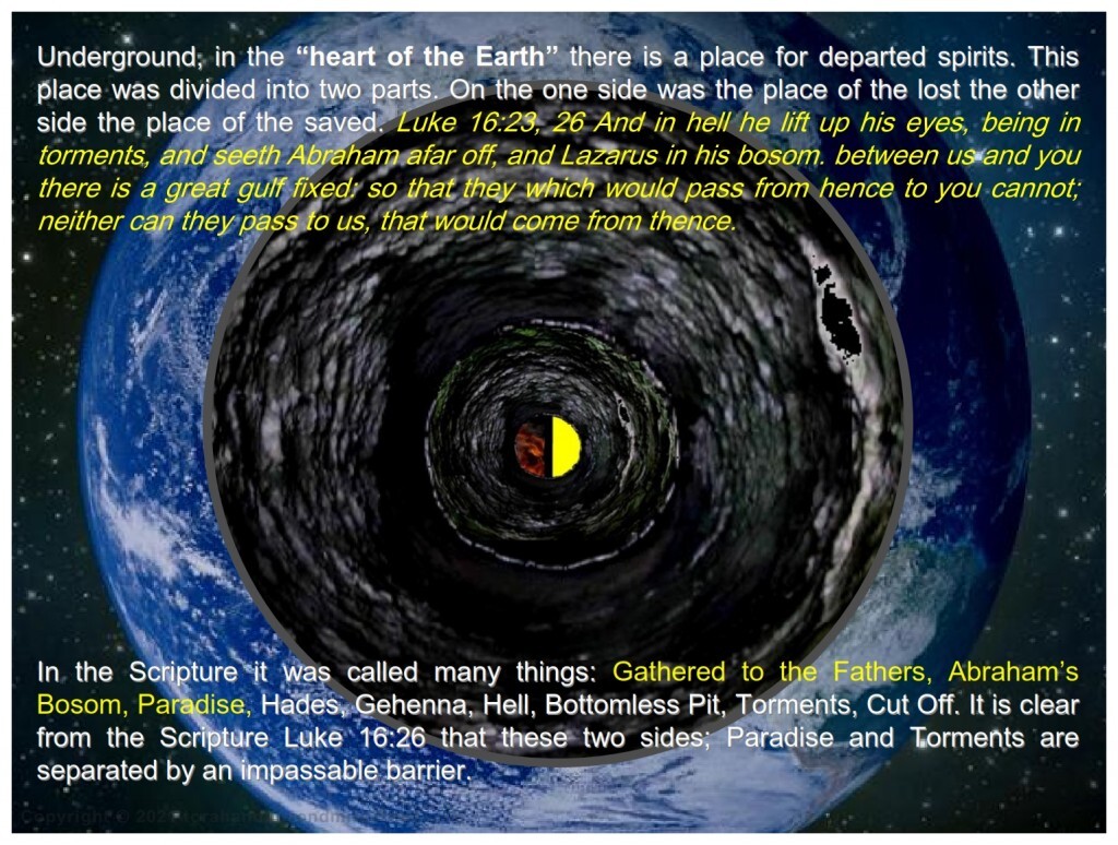 The idea that there is an underground chamber in the “heart of the Earth” where the departed spirits of humans go after their body dies might sound questionable to some people. The idea that there is a Creator is probably just as questionable to these people. The choice to believe is yours to make and the result of the choice has eternal consequences.