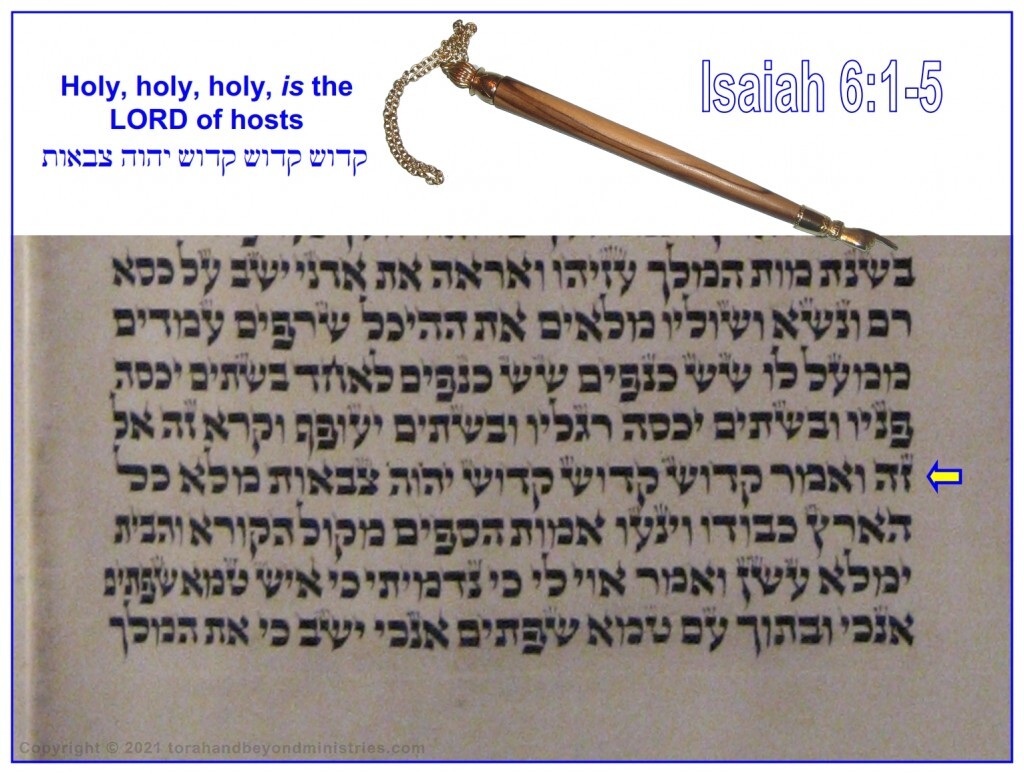 The following photograph is from a Scroll of Isaiah written in Russia early in the 20th century. The Scripture shown is Isaiah 6:1-5.