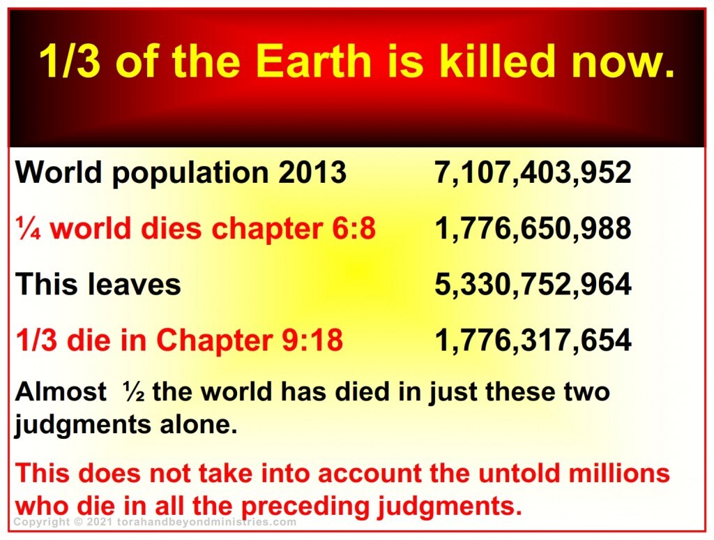 Over half of the world has died thus far in less that three and a half years of the first part of the Tribulation.