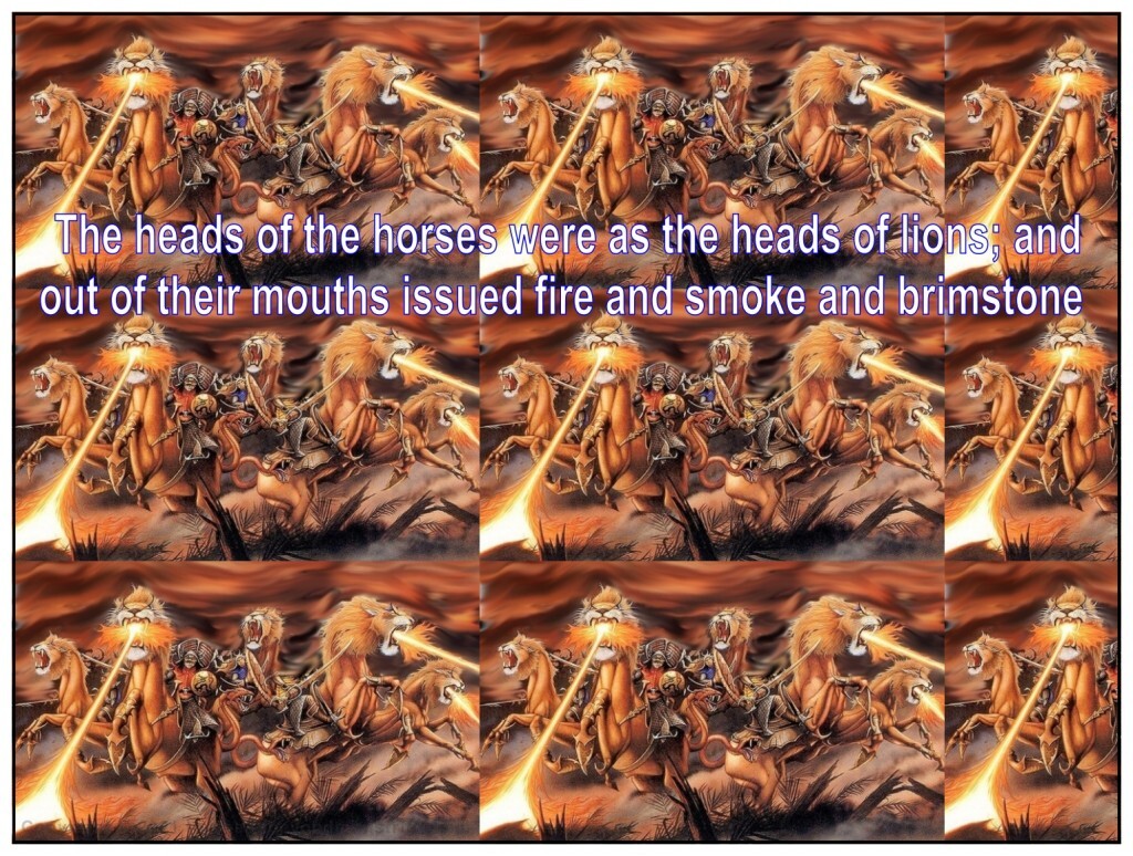 The heads of the horses were as the heads of lions; and out of their mouths issued fire and smoke and brimstone