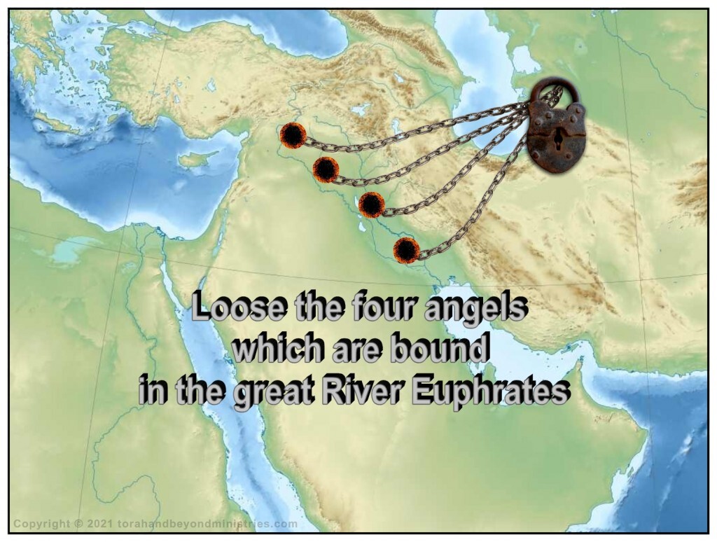 The sixth Trumpet sounds – Loose the four angels which are bound in the great river Euphrates.