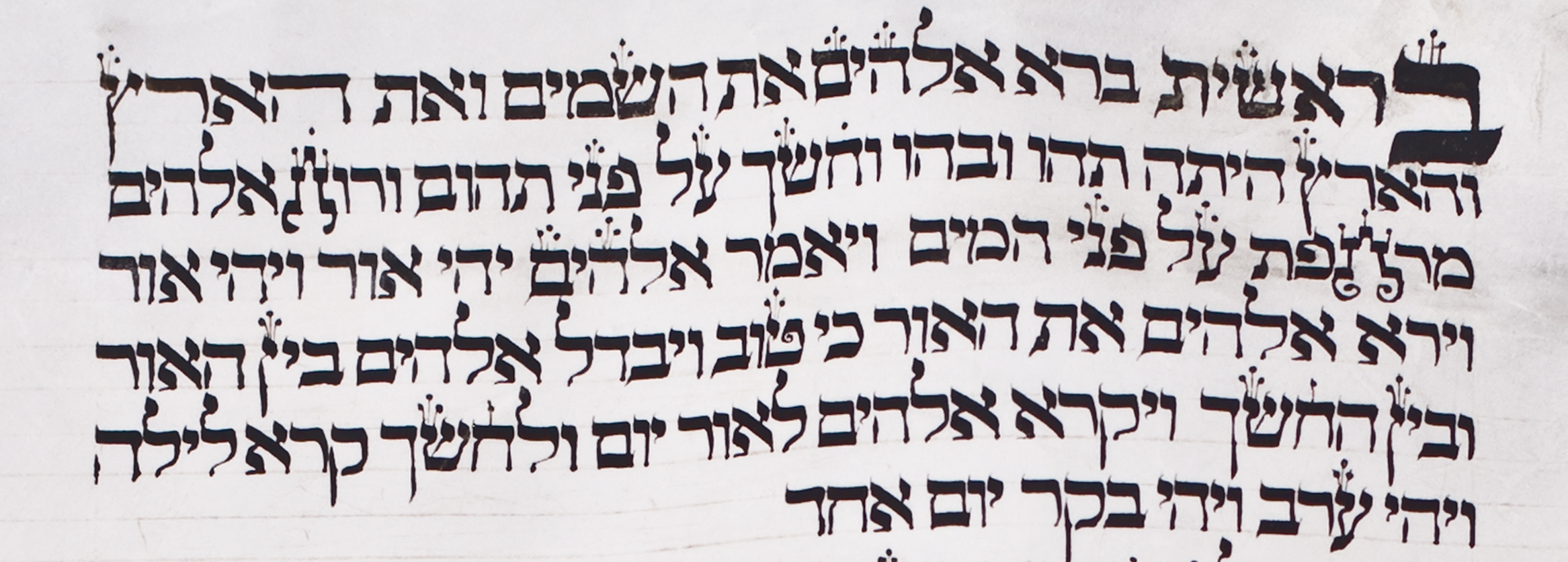 Photograph Torah Scroll written around 1750  Genesis 1:1-5