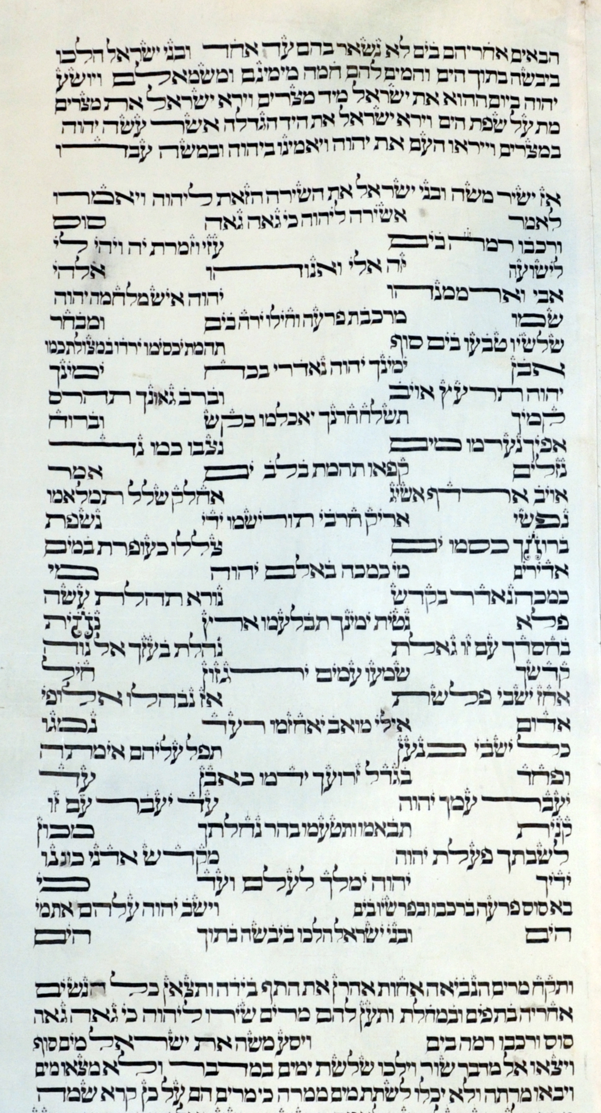 The following two photographs are from a Torah Scroll written in Vilnius, Lithuania around 1750. The pictures are at the crossing of the Red Sea.