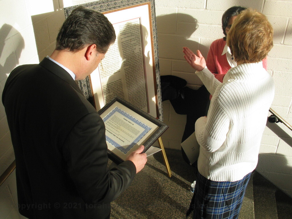 A unique collection of authentic Hebrew Scrolls from around the world collected by Gary & Artis Zimmerman. Most of these Scrolls date from the mid 1500 to the late 1800. Many were damaged in the Holocaust and were no longer usable for Synagogue reading. A Christian businessman funded this project and asked that we find non kosher Hebrew Scrolls that had been fragmented and would never be used again. He directed us to frame as many of the individual sheets as possible and to donate them to Christian colleges, Bible translators, Museums, Churches, etc. where the Word of God is honored and studied and the Jewish people are loved and respected. Approximately 400 individual sheets have been donated, many of them in museum quality frames to encourage them to be hung in prominent places.