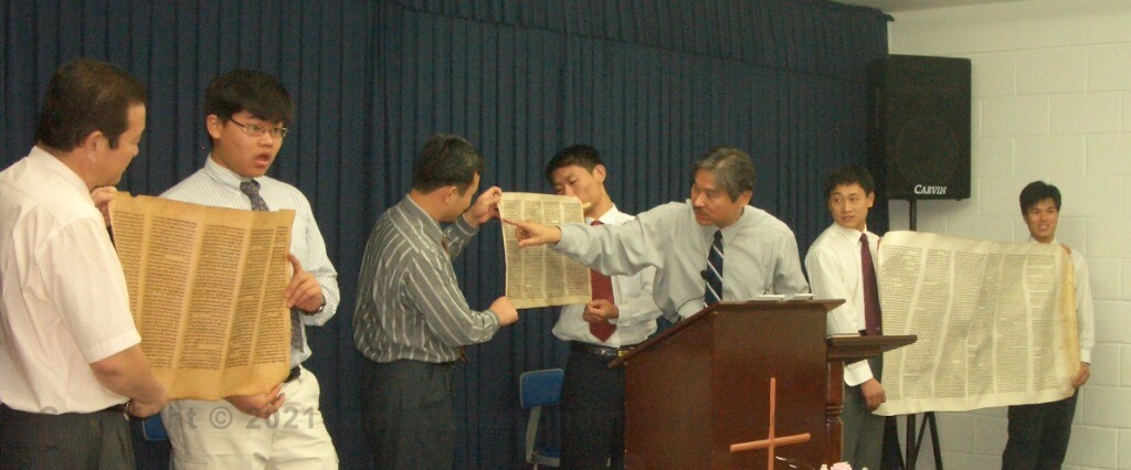 The photo shown above was taken at Eucon International School on the Island of Saipan. Dr Wei is showing Chinese Pastors some fragments of Hebrew scrolls.
