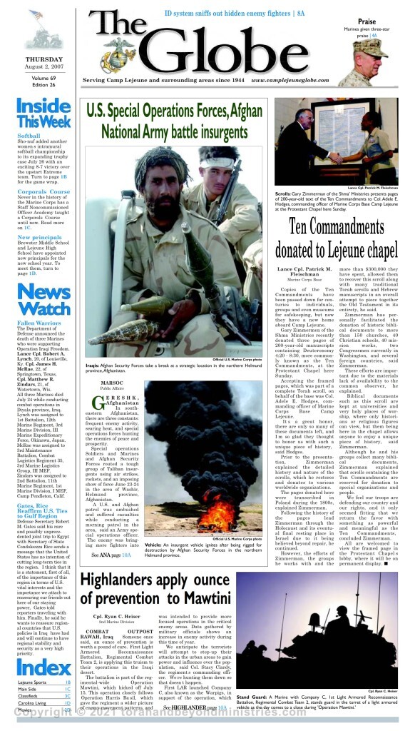Hebrew Scroll Exhibit at Protestant Chapel Chapel Camp Lejeune Marine Base North Carolina