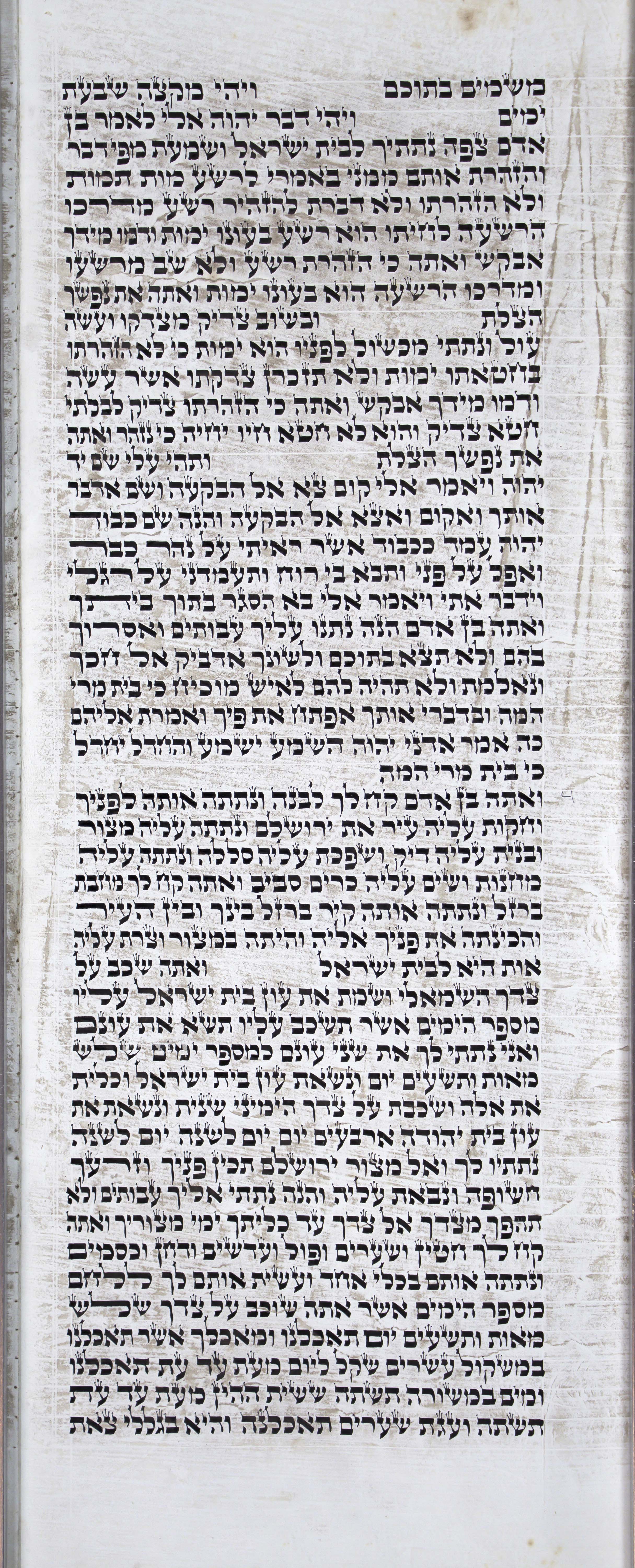 1Thou also, son of man, take thee a tile, and lay it before thee, and pourtray upon it the city, even Jerusalem: 2And lay siege against it, and build a fort against it, and cast a mount against it; set the camp also against it, and set battering rams against it round about. 3Moreover take thou unto thee an iron pan, and set it for a wall of iron between thee and the city: and set thy face against it, and it shall be besieged, and thou shalt lay siege against it. This shall be a sign to the house of Israel. 4Lie thou also upon thy left side, and lay the iniquity of the house of Israel upon it: according to the number of the days that thou shalt lie upon it thou shalt bear their iniquity. 5For I have laid upon thee the years of their iniquity, according to the number of the days, three hundred and ninety days: so shalt thou bear the iniquity of the house of Israel. 6And when thou hast accomplished them, lie again on thy right side, and thou shalt bear the iniquity of the house of Judah forty days: I have appointed thee each day for a year. 7Therefore thou shalt set thy face toward the siege of Jerusalem, and thine arm shall be uncovered, and thou shalt prophesy against it. 8And, behold, I will lay bands upon thee, and thou shalt not turn thee from one side to another, till thou hast ended the days of thy siege.