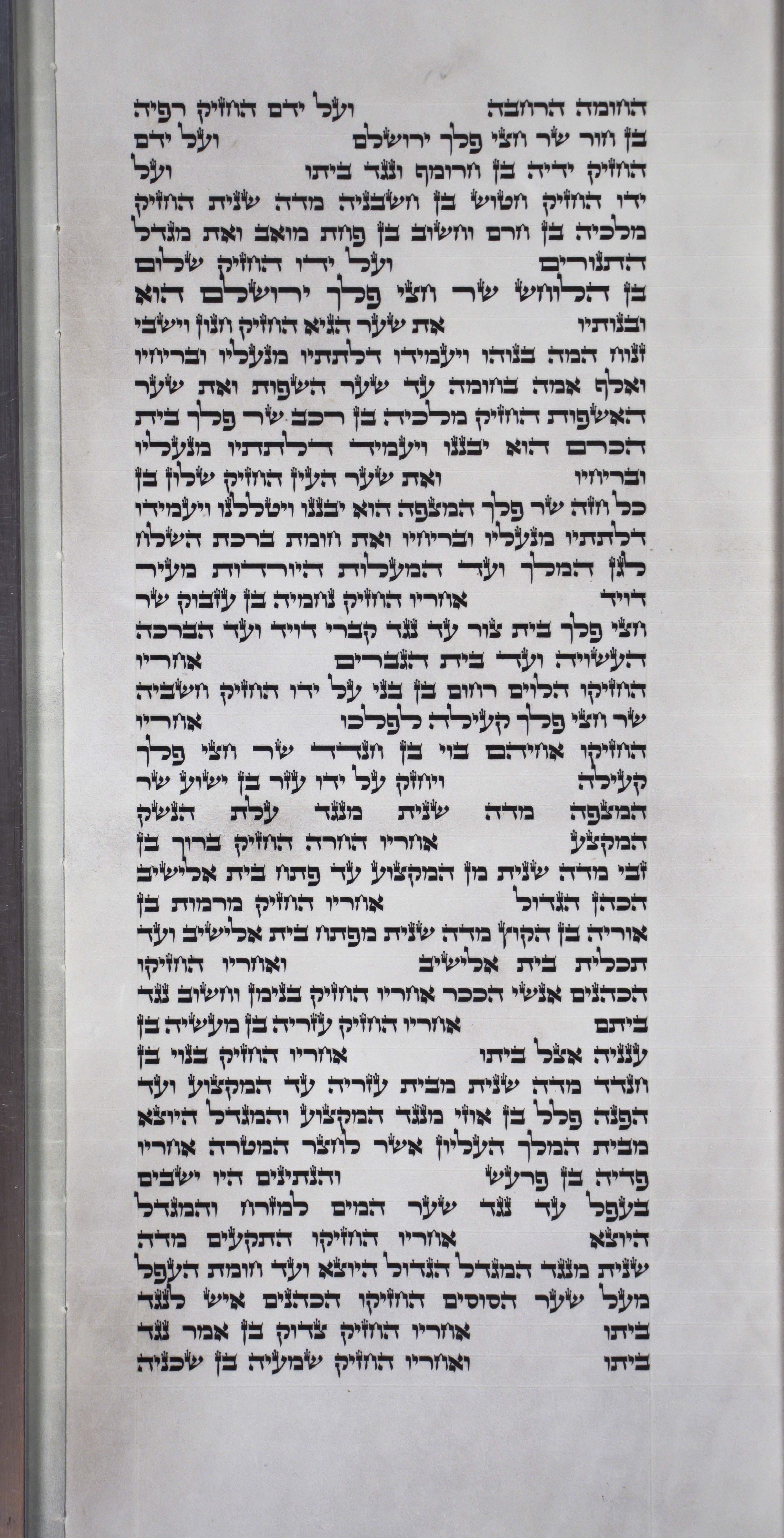 9And next unto them repaired Rephaiah the son of Hur, the ruler of the half part of Jerusalem. 10And next unto them repaired Jedaiah the son of Harumaph, even over against his house. And next unto him repaired Hattush the son of Hashabniah. 11Malchijah the son of Harim, and Hashub the son of Pahathmoab, repaired the other piece, and the tower of the furnaces. 12And next unto him repaired Shallum the son of Halohesh, the ruler of the half part of Jerusalem, he and his daughters. 13The valley gate repaired Hanun, and the inhabitants of Zanoah; they built it, and set up the doors thereof, the locks thereof, and the bars thereof, and a thousand cubits on the wall unto the dung gate. 14But the dung gate repaired Malchiah the son of Rechab, the ruler of part of Bethhaccerem; he built it, and set up the doors thereof, the locks thereof, and the bars thereof. 15But the gate of the fountain repaired Shallun the son of Colhozeh, the ruler of part of Mizpah; he built it, and covered it, and set up the doors thereof, the locks thereof, and the bars thereof, and the wall of the pool of Siloah by the king’s garden, and unto the stairs that go down from the city of David. 16After him repaired Nehemiah the son of Azbuk, the ruler of the half part of Bethzur, unto the place over against the sepulchres of David, and to the pool that was made, and unto the house of the mighty. 17After him repaired the Levites, Rehum the son of Bani. Next unto him repaired Hashabiah, the ruler of the half part of Keilah, in his part. 18After him repaired their brethren, Bavai the son of Henadad, the ruler of the half part of Keilah. 19And next to him repaired Ezer the son of Jeshua, the ruler of Mizpah, another piece over against the going up to the armoury at the turning of the wall. 20After him Baruch the son of Zabbai earnestly repaired the other piece, from the turning of the wall unto the door of the house of Eliashib the high priest. 21After him repaired Meremoth the son of Urijah the son of Koz another piece, from the door of the house of Eliashib even to the end of the house of Eliashib. 22And after him repaired the priests, the men of the plain. 23After him repaired Benjamin and Hashub over against their house. After him repaired Azariah the son of Maaseiah the son of Ananiah by his house. 24After him repaired Binnui the son of Henadad another piece, from the house of Azariah unto the turning of the wall, even unto the corner. 25Palal the son of Uzai, over against the turning of the wall, and the tower which lieth out from the king’s high house, that was by the court of the prison. After him Pedaiah the son of Parosh. 26Moreover the Nethinims dwelt in Ophel, unto the place over against the water gate toward the east, and the tower that lieth out. 27After them the Tekoites repaired another piece, over against the great tower that lieth out, even unto the wall of Ophel. 28From above the horse gate repaired the priests, every one over against his house. 29After them repaired Zadok the son of Immer over against his house. After him repaired also Shemaiah the son of Shechaniah, the keeper of the east gate.