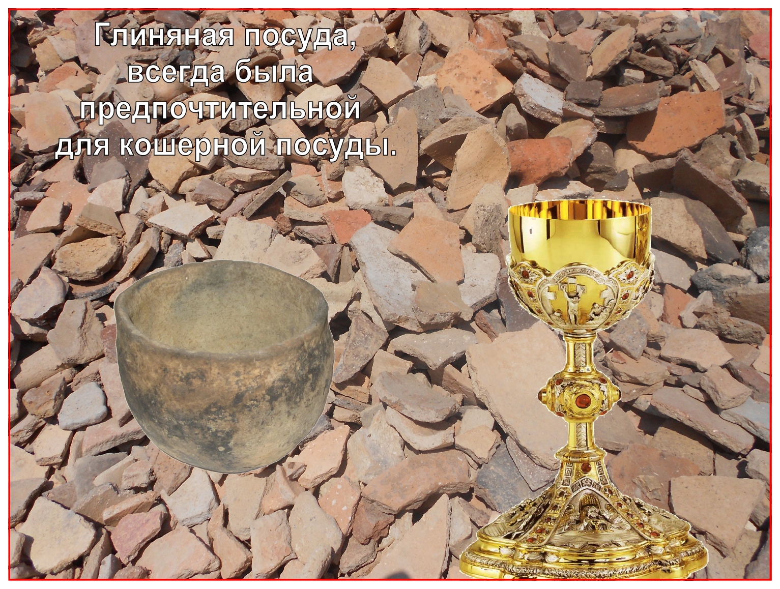 Если вы ищите Святой Грааль или дорогую чашу, которая использовалась на Пасхальной вечере Господа, вы окажитесь не на той тропе. Кроме богатых людей, остальные всегда использовали глиняную посуду, когда какой-то сосуд должен был быть кошерным. Она недорогая, может быть украшена или раскрашены в соответствии с праздником и может быть легко выброшена, если кошерность этой посуды находится под вопросом.