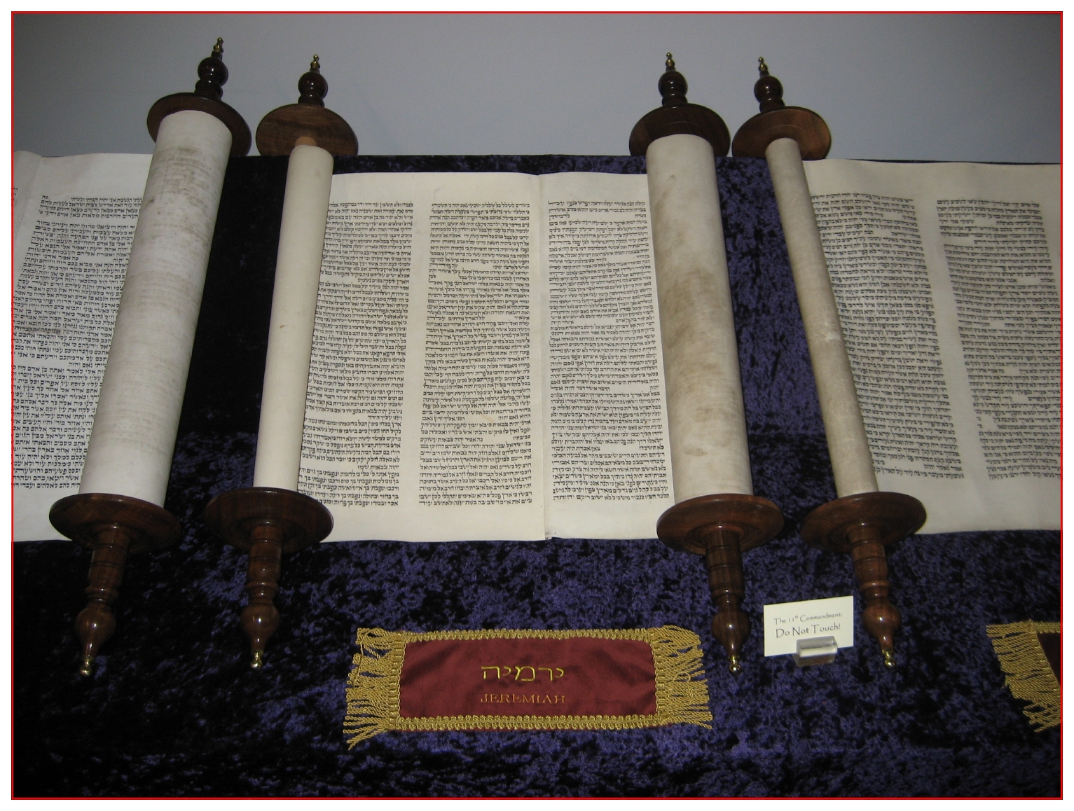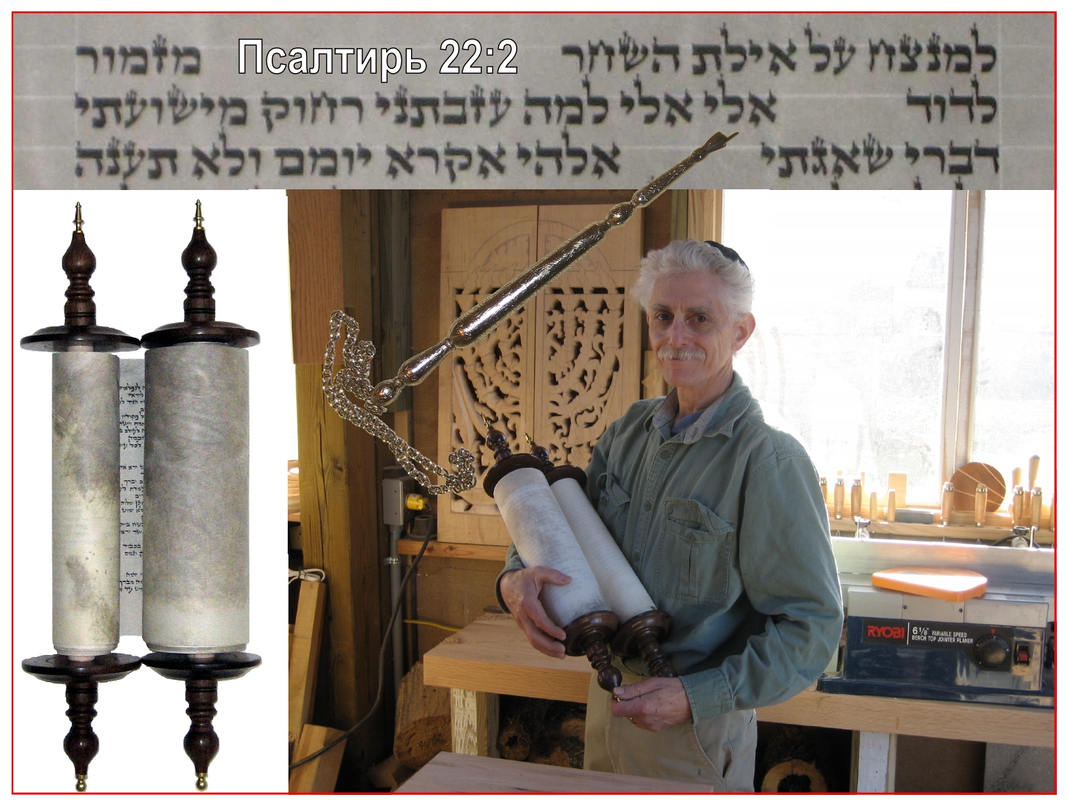 Свиток Псалмов является очень редким. Свиток на этой фотографии был получен из маленькой синагоги в Иерусалиме. Нам позволили приобрести этот свиток для нашей коллекции после того, как был введен в эксплуатацию вновь написанный свиток. Выделите быть написано. Свиток находится в мастерской резчика по дереву, где были установлены Эц Хаим (деревянные ролики для свитков). Эц Хаим означает “дерево жизни”, и это ссылка на Бытия 2:9 ” дерево жизни посреди рая”.
