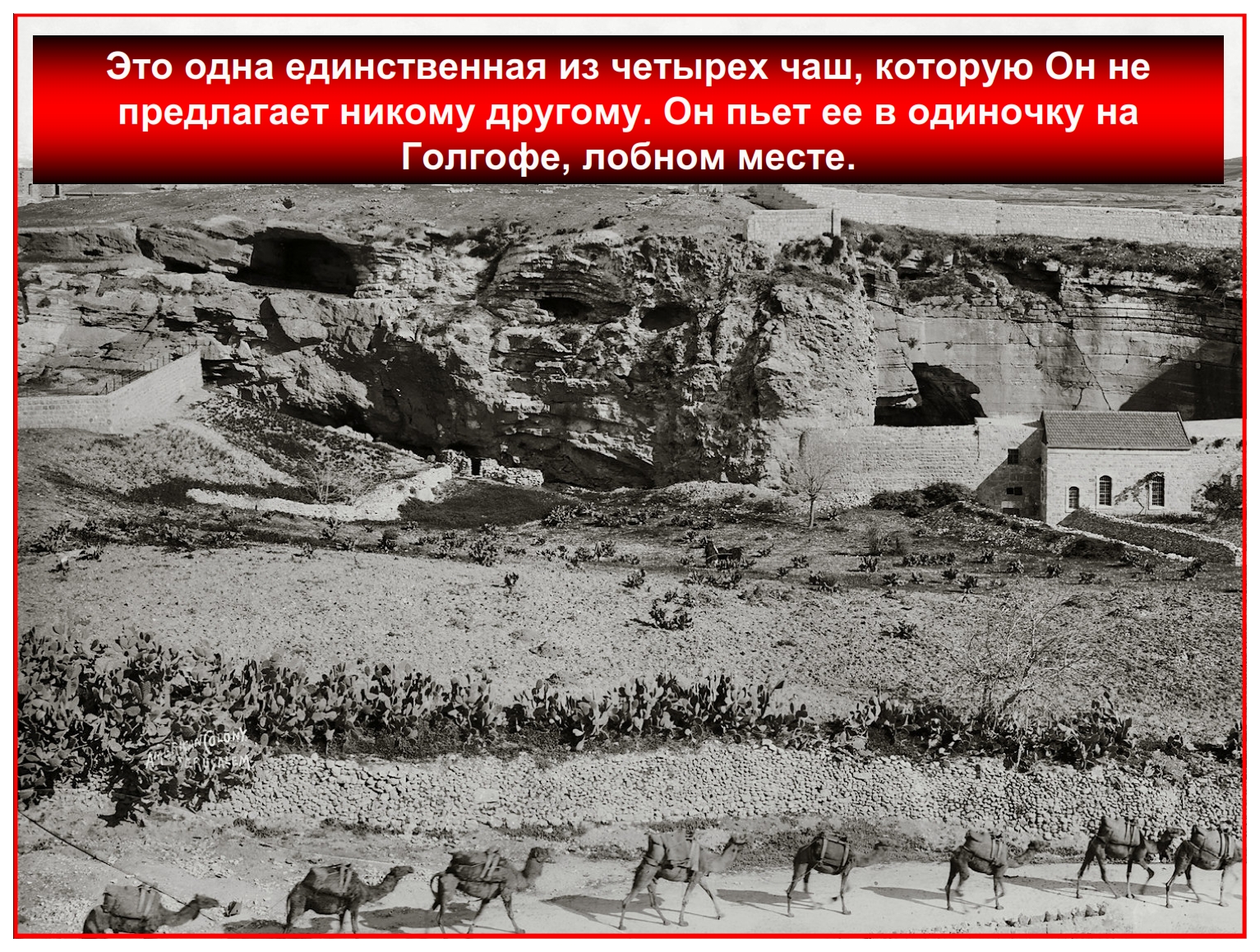 Стих 42 – В Гефсиманском саду Иисус упоминает третью чашу. Он не пьет ее там, Он только ее упоминает . Несколько часов спустя, как раз перед тем, как Он предает Дух Свой, он выпьет из этой третьей чаши. Это единственная чаша, которую мы не пьем с Ним. Это чаша называется чашей искупления. Иоанна 19: 28-30 – Только истинный Мессия, истинный родственник Искупитель мог заплатить цену, необходимую для нашего выкупа.