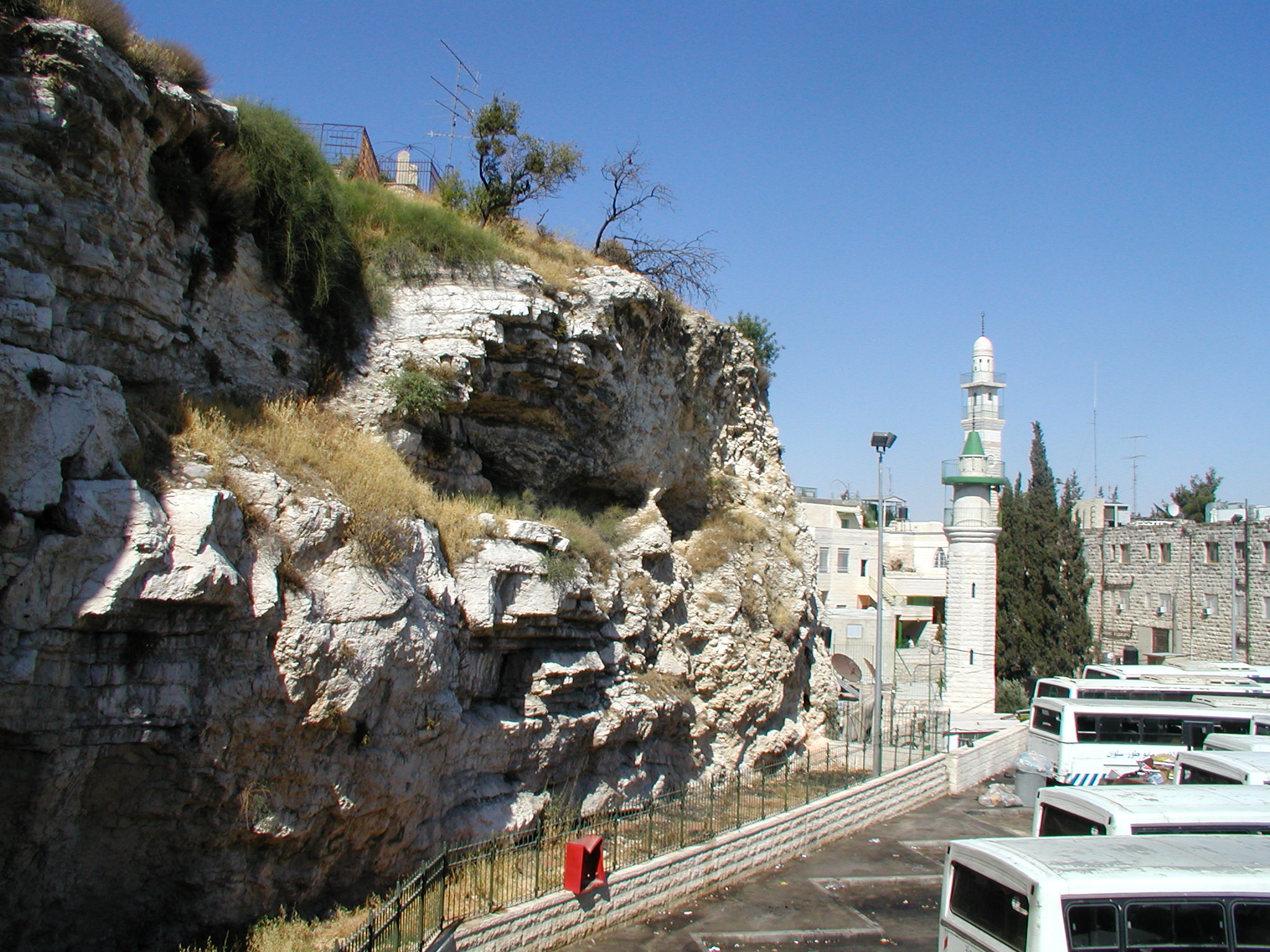 (Примечание: Этот холм находится за старыми городскими стенами Иерусалима, где римские солдаты провели много распятий. Оттуда открывался обзор на город и он был расположен у дороги, по которой часто путешествовали. Углубления на поверхности холма не являются естественными, поскольку они не сохранятся в таком виде из-за временных и сезонных изменений. Нет сомнений в том, однако, что кто-то всегда вытесывает лицо на холме, чтобы он выглядел, как череп).
