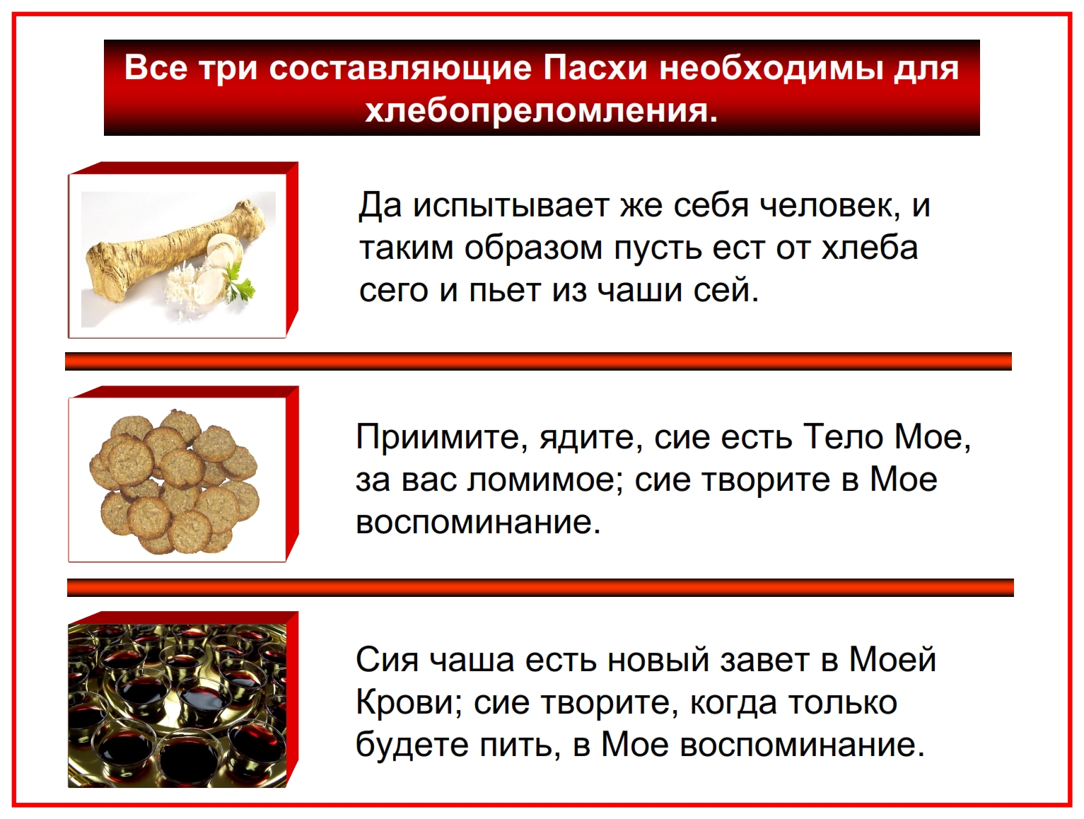 И когда настал час, Он возлег, и двенадцать Апостолов с Ним, и сказал им: очень желал Я есть с вами сию пасху прежде Моего страдания, ибо сказываю вам, что уже не буду есть ее, пока она не совершится в Царствии Божием. И, взяв чашу и благодарив, сказал: приимите ее и разделите между собою. Луки 22: 14-17