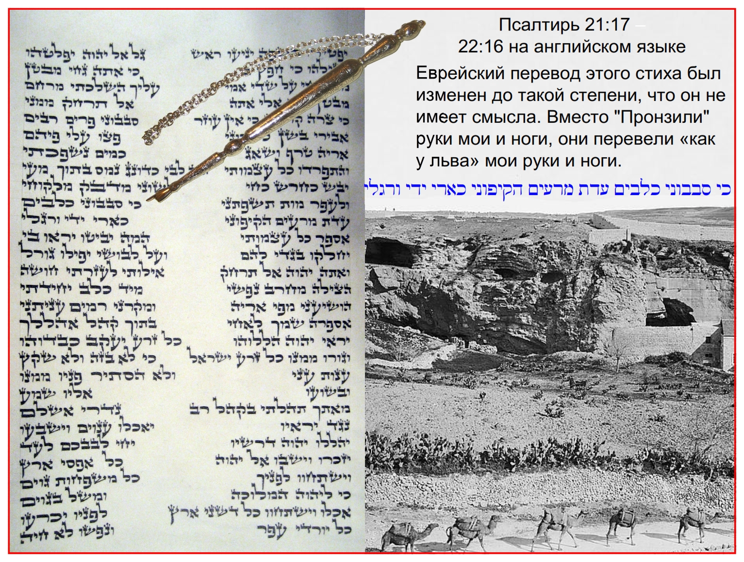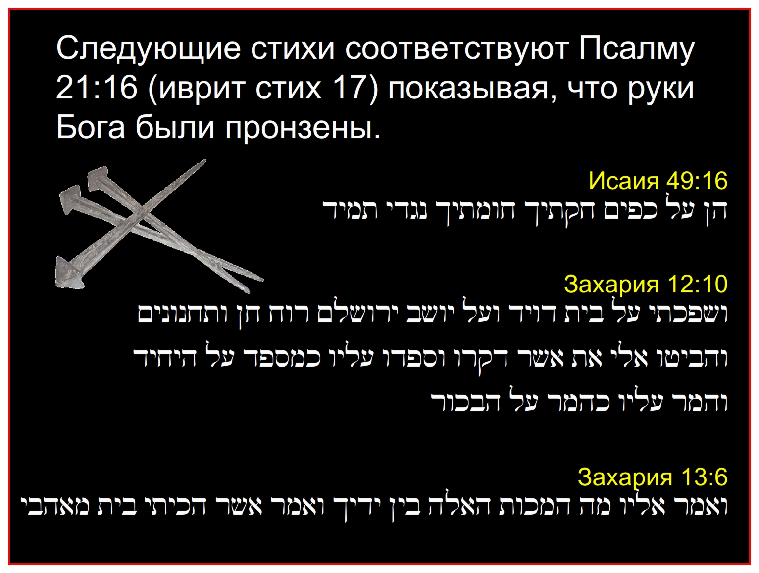 Ибо псы окружили меня, скопище злых обступило меня, пронзили руки мои и ноги мои. Псалом 22:16